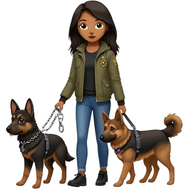 a girl with a brown dark long hair, she's walking her dog is a german shepard emoji