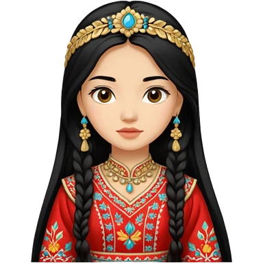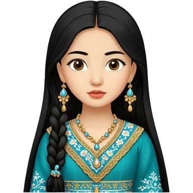 Uzbek girl who has long black hair and beautiful traditional dress emoji | AI Emoji Generator