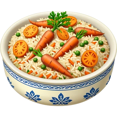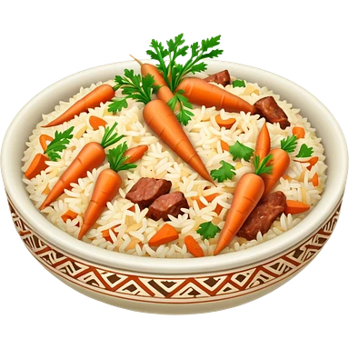 Uzbek cuisine humanless avatar in bright illustration. Classic dishes like plov, warm golden and earthy tones, simple shapes, flat design, high contrast, friendly and appetizing. emoji