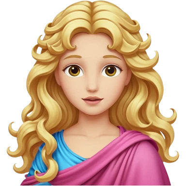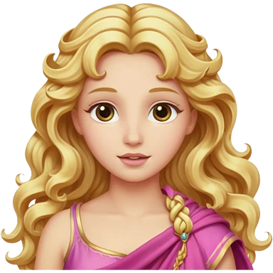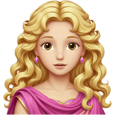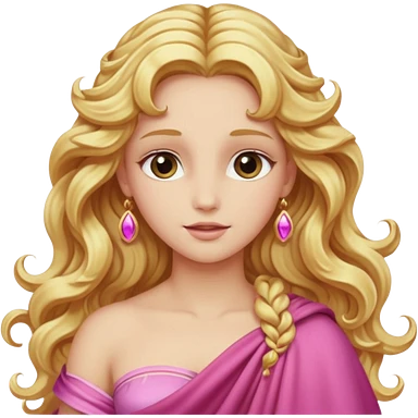 Venus from Olympus Gods with long golden blonde wavy hair, pink stola emoji