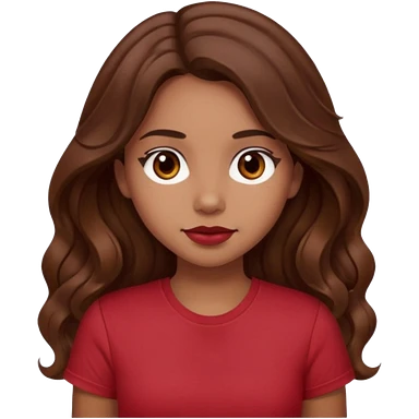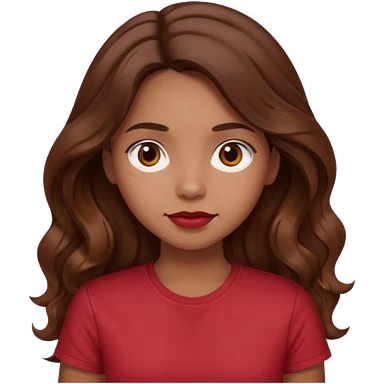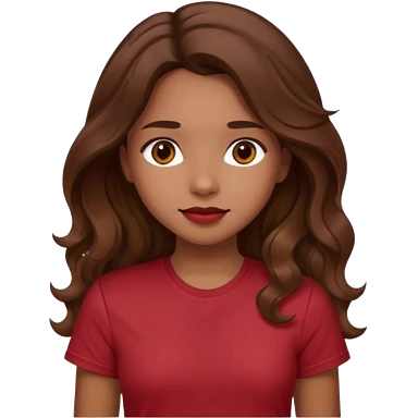 Very light brown girl with long wavy brunette hair and blush, wearing dark red tshirt emoji