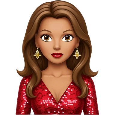 Vanessa Williams with long brown hair, red sequin outfit emoji