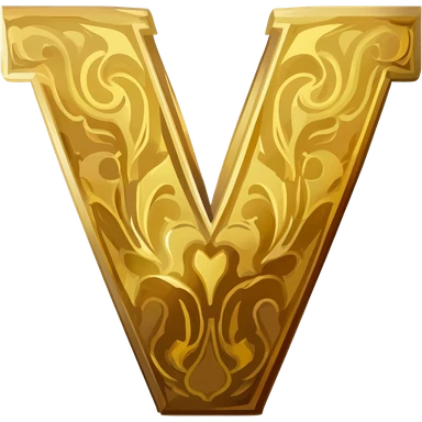 'V' badge that v word have golden border . outside of v is dark brown and full object covered by 6 walls golden border emoji