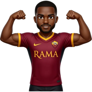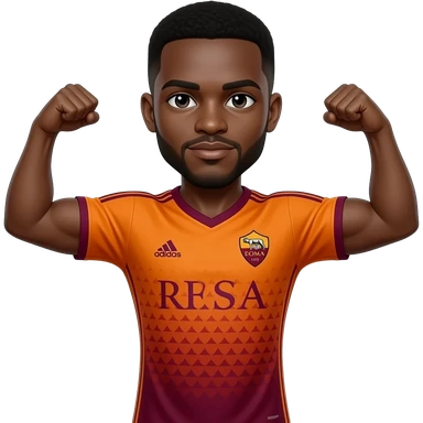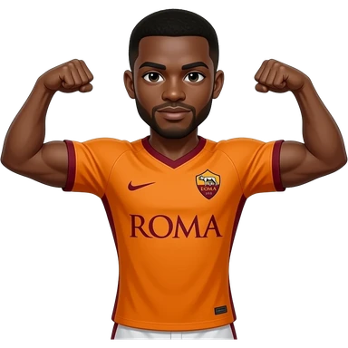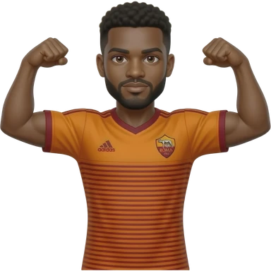 Black man with goatee double arm flex wearing AS ROMA orange adidas away kit emoji