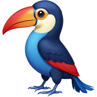 Blue tropical toucan-fakemon-bird, with red long beak, with a short blue lizard-tail curled inwards, Genshin Impact’s Dusk Bird emoji