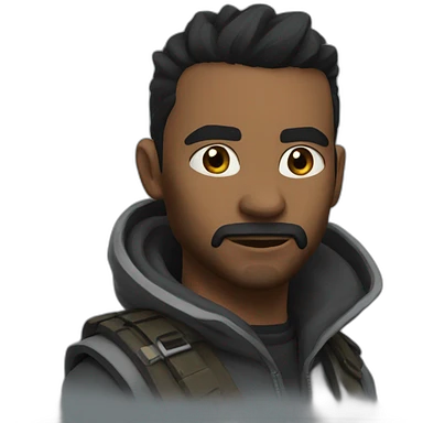developer behind his laptop with this style : Riot Games Valorant dark red glowing bright blue character blue black hooded assassin themed character emoji