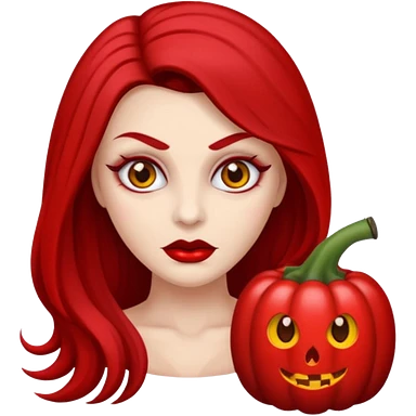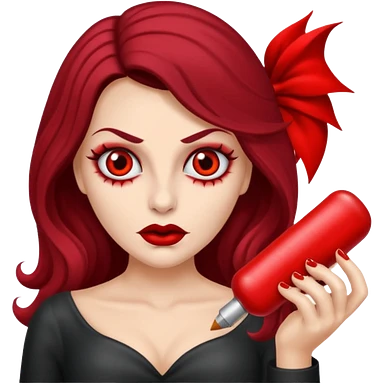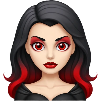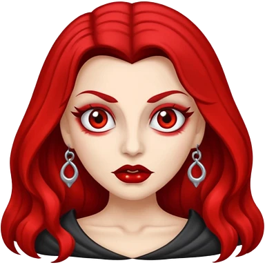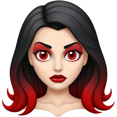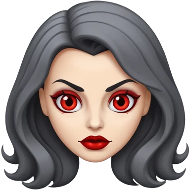 vampira com o tom de pele cinza com os olhos vermelhos, cabelos longos e ondulados e pretos emoji