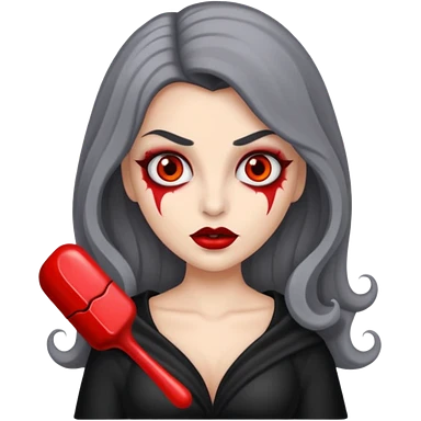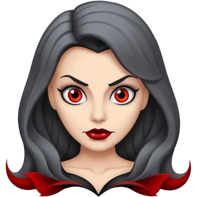 vampira com a cor de pele cinza, cabelo ondulados preto emoji | AI Emoji Generator