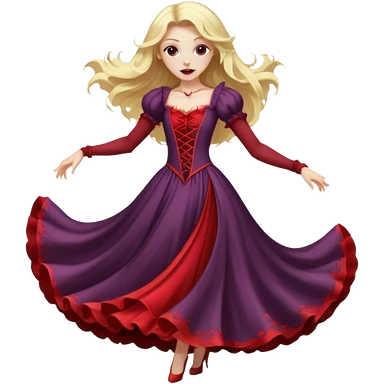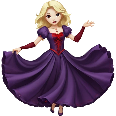 vampire girl with long curly red hair and blue eyes, in a black emoji