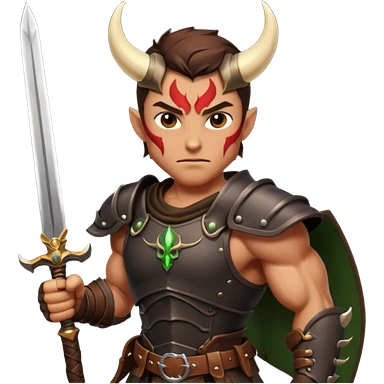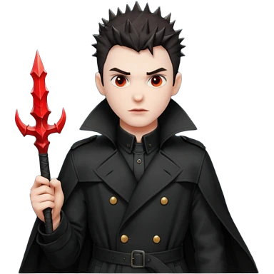 Vampire Hunter with long dark brown hair, dark brown sequin baggy pants, shirtless with necklace, dark brown sequin cape emoji | AI Emoji Generator
