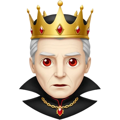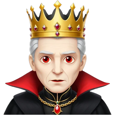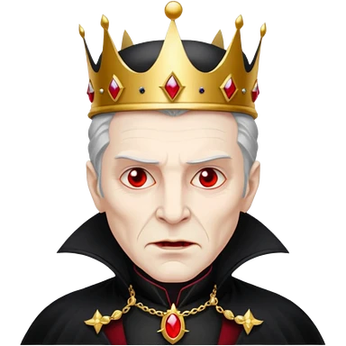 Vampire King, Elder vampire in royal black coat, wearing a crown, red eyes. emoji