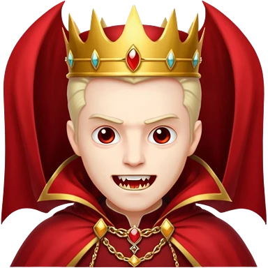 Vampire King, Young vampire king in purple robe, wearing a crown, confident smirk. emoji | AI Emoji Generator