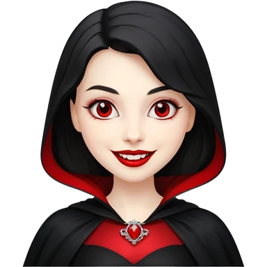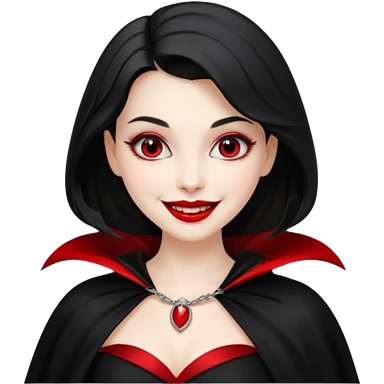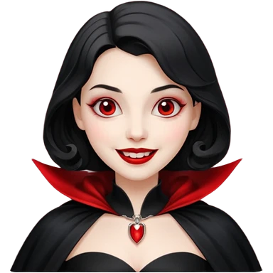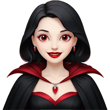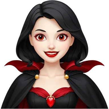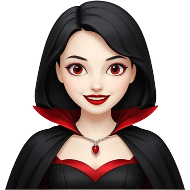 Vampire lady in black dress with cape, smile emoji | AI Emoji Generator