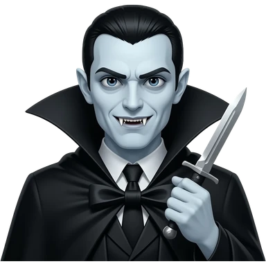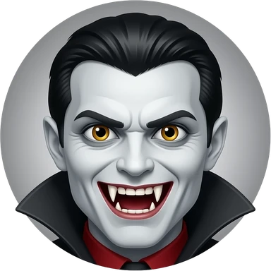 vampire prince, messy dark hair, bright blue eyes, small fangs, slightly pointed ears, golden crown with red gems, black cape with red lining, grey cardigan, gothic fantasy style, drinking blood from a cup, hyperrealistic emoji