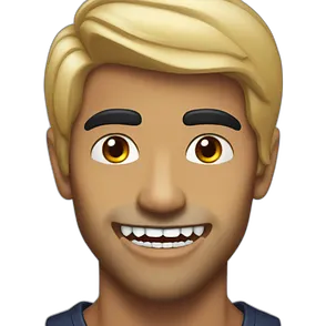 a girl with vampire teeth and brown hair with a little bit of purple emoji