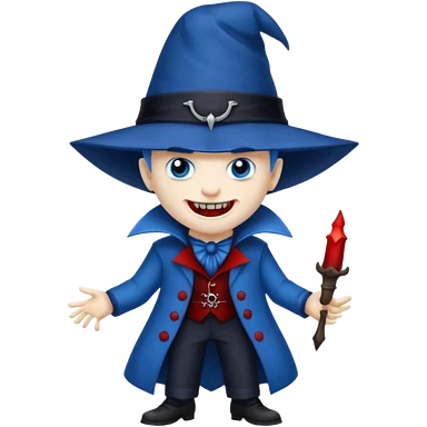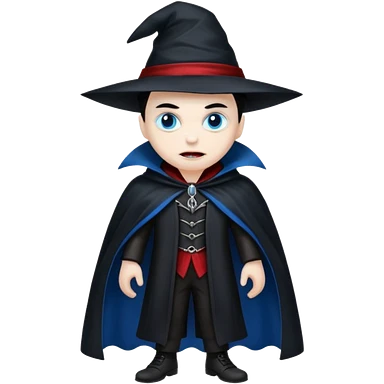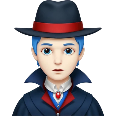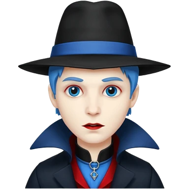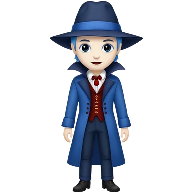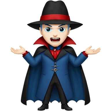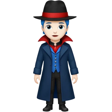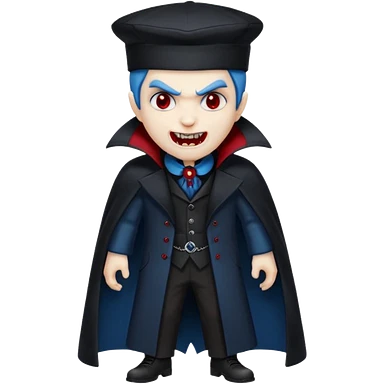 Vampire with blue hat,black coat with read collared ,full body. emoji | AI Emoji Generator