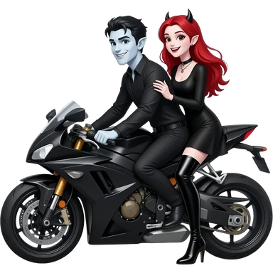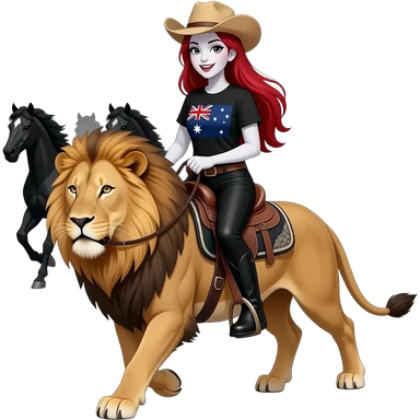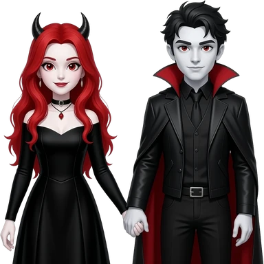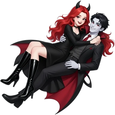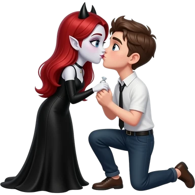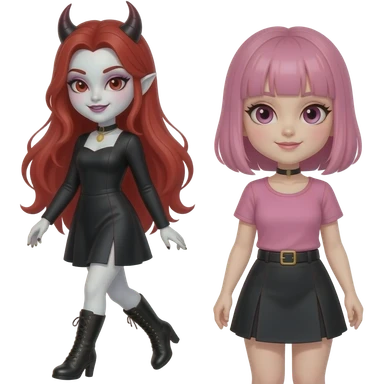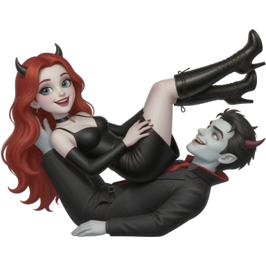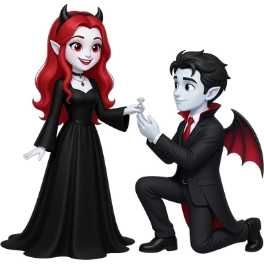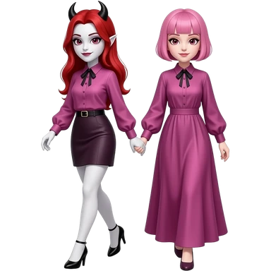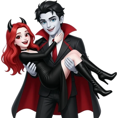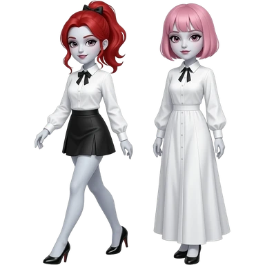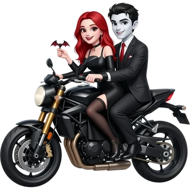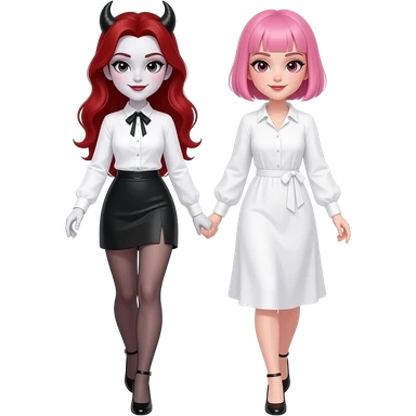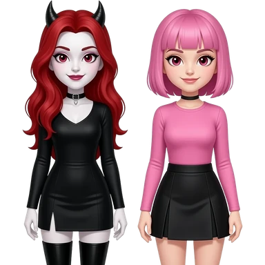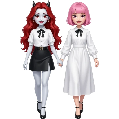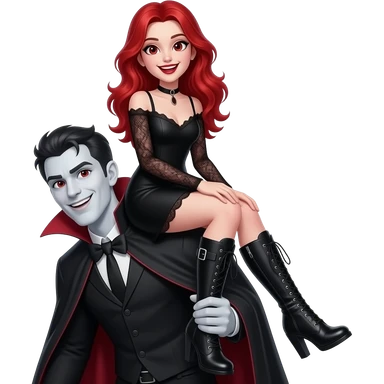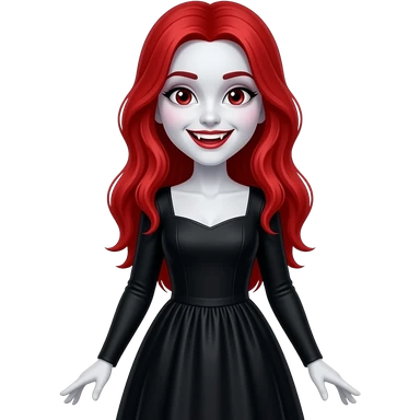Vampiro femmina ADOLESCENTE con pelle bianca e capelli rossi indossa una gonna lunga fino alle ginocchia nera, una camicetta bianca, una giacchetta blu un fluourard rosso corto legato al collo e dei tacchi neri che guida un aereo emoji | AI Emoji Generator
