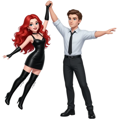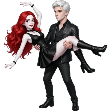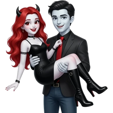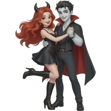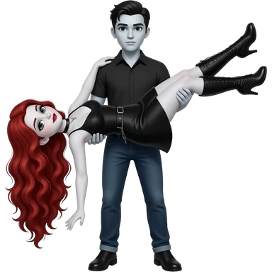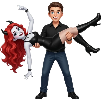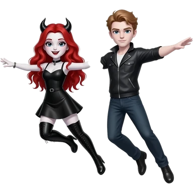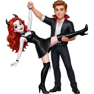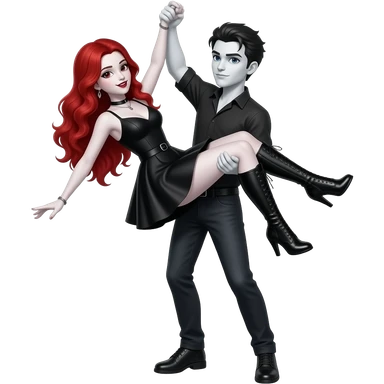 Vampiro femmina ADOLESCENTE con pelle bianca e capelli rosso ondulati lunghi raccolti in una mezza coda che indossa dei jeans corti un top nero con maniche lunghe e degli stivali lunghi con tacco che cavalca un leone insieme ad dei CUCCIOLI di leone emoji | AI Emoji Generator