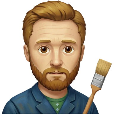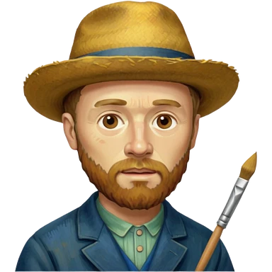 van gogh paints on a canvas. right ear is bandaged. emoji