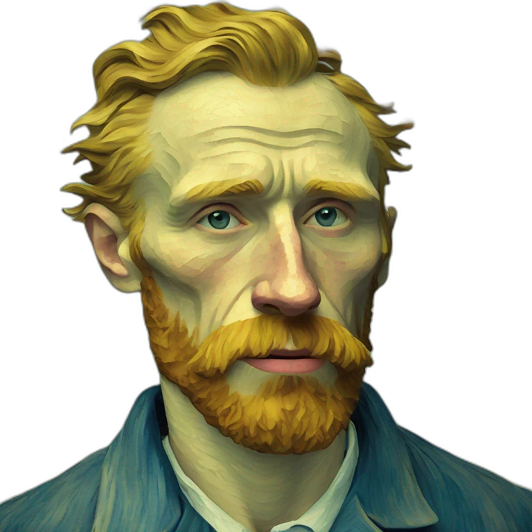 van gogh paints on a canvas. right ear is bandaged. emoji