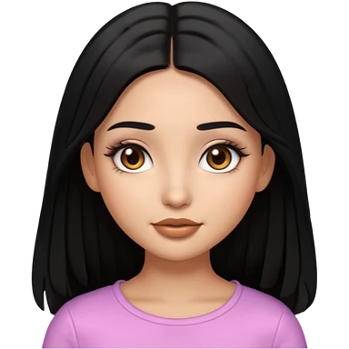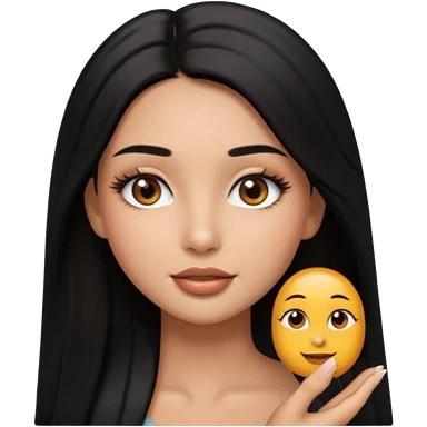 pretty cartoon girl, semi-realistic 3D emoji style, long middle parted straight black hair, tan skin, brown eyes, long eyelashes, soft glam makeup, glossy lips, smooth skin, cute aesthetic, emoji
