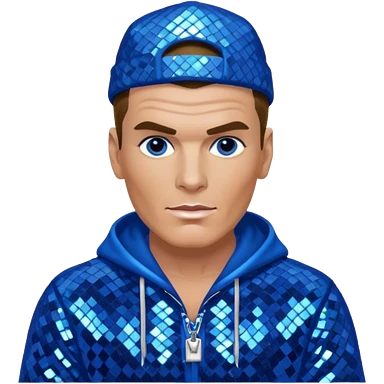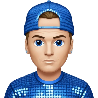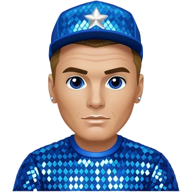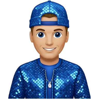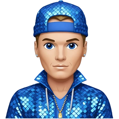 Vanilla Ice with dark blonde hair, blue sequin outfit emoji