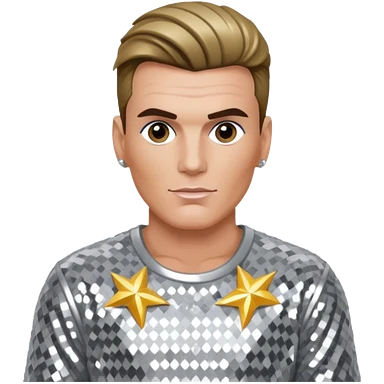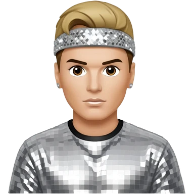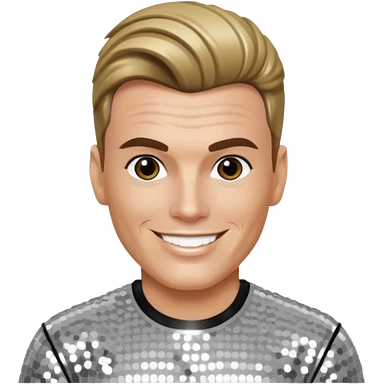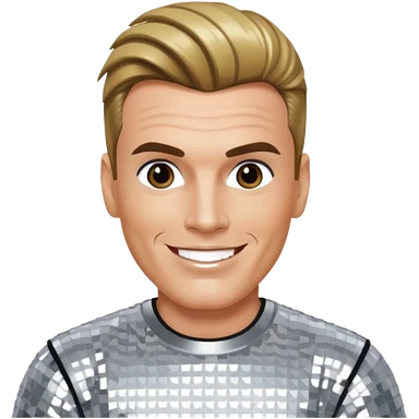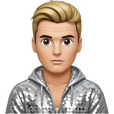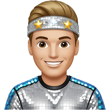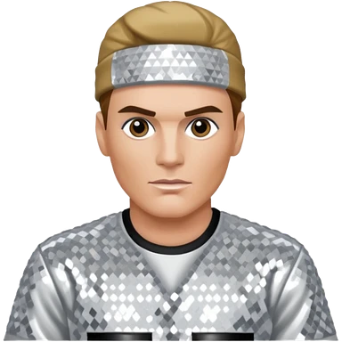 Vanilla Ice with dark blonde hair, silver sequin outfit emoji