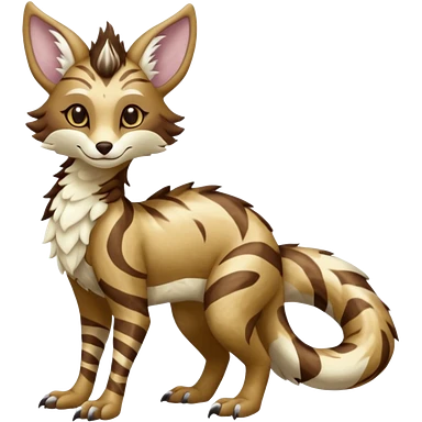 Feral Rare Fantasy caramel-brown and vanilla-cream swirled dessert-like plush fur Vernid-Sergal-Genet-Trico-species by LiLaiRa, random markings, tufted tail, tufted ears, full body emoji