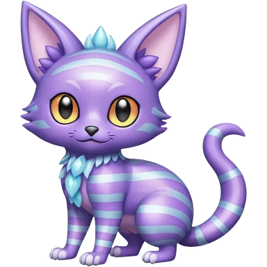 Shiny Iridescent Pastel-Lavender Frosted Glossy Crystal-Striped Noibat-Litten-Trico-hybrid creature (full body) emoji