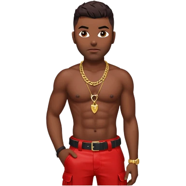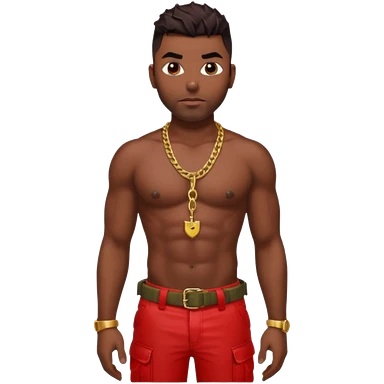 Ginuwine with dark brown hair, shirtless with necklace, latex red cargo pants emoji