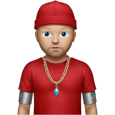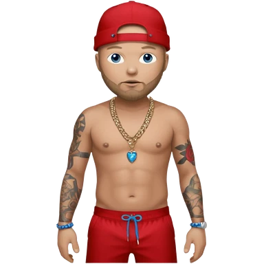 Fred Durst with metallic red pants, shirtless with necklace, blue eyes, dark blonde hair emoji