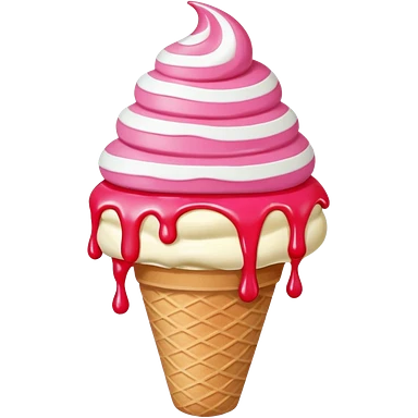 strawberry soft serve ice cream in a cone, pink swirl emoji