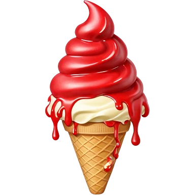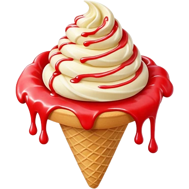 Vanilla Ice cream on a waffle cone dripping a little emoji