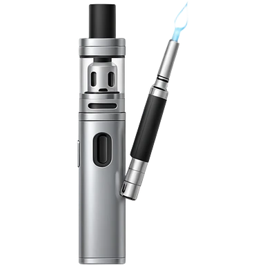 vape pen with yellow oil in the screw on cartridge with a black body and a button on it that looks like a dab pen emoji