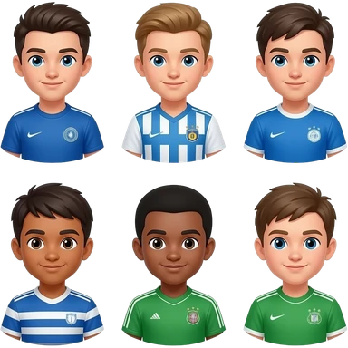 Vários atletas jovens juntos ventindo azul, branco e verde emoji | AI Emoji Generator