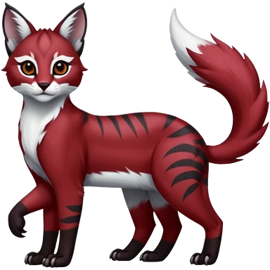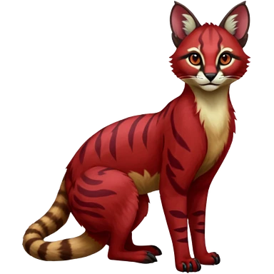 Dark gloomy red-furred colorful painted marked patterned Asian glorious divine exotic cute cool beautiful shiny beautiful fantasy-caracal-civet-genet-sergal-vernid-Cacomistle-oncilla-animal-Fakémon-hybrid-fursona (full body) emoji