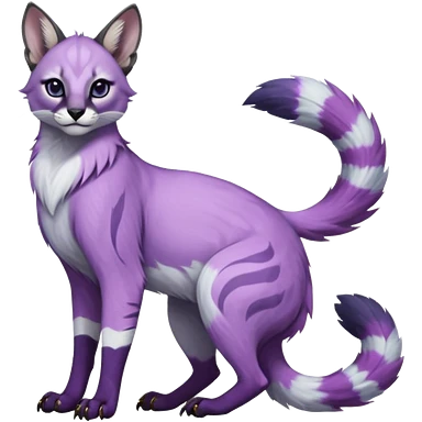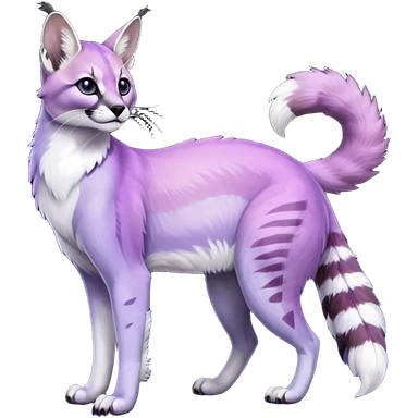 Colorful dark tropical pastel-lilac-lavender-violet pastel white glorious divine exotic cute cool beautiful shiny beautiful fantasy-caracal-civet-genet-sergal-vernid-Gryphon-Cacomistle-Trico-oncilla-animal-Fakémon-hybrid-fursona (full body) emoji