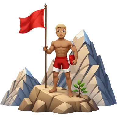 dağın tepesine çıkmayı başaran vedağa kırmızı bir bayrak diken adam emoji