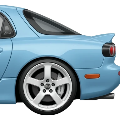 A light blue customised Mazda Rx7 with white rims with the word Velocity underneath it emoji