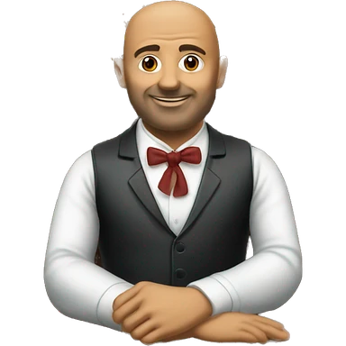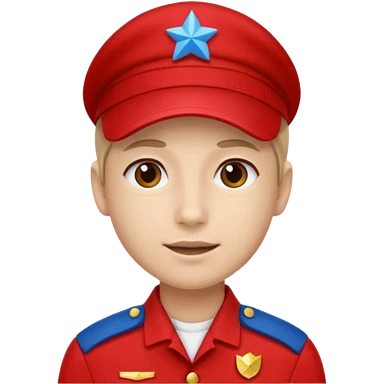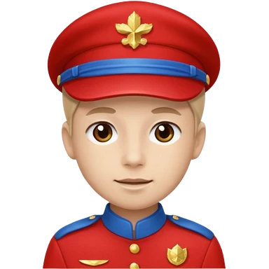 Vendeur comptoir habiller en rouge portant une casquette bleu emoji | AI Emoji Generator