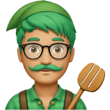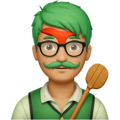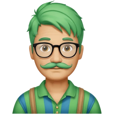 venice gondolier with green hair, iconic hat, normal glassess and mustache emoji