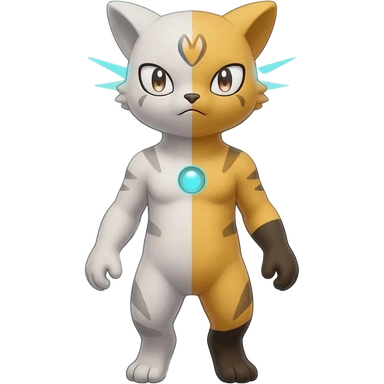 Meloetta-Vernid-Bobcat-Primagen-Fionbri-Trico-Protogen-hybrid-fusion-Fakémon-creature, full body emoji