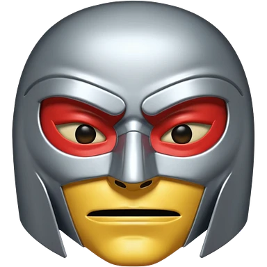 A chrome or steel mask that covers the entire face except the eyes and mouth, with a stern, mysterious expression. The design has sharp cheek ridges, a center forehead line, and vent-like slits near the mouth — giving it that mix of ancient warrior and supervillain tech. emoji