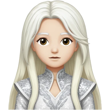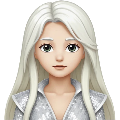 Ouranos from Gods and Goddesses with long white hair, white sequin outfit emoji