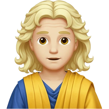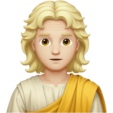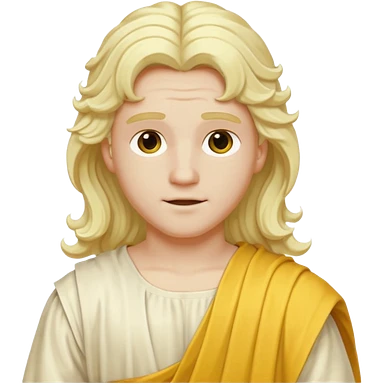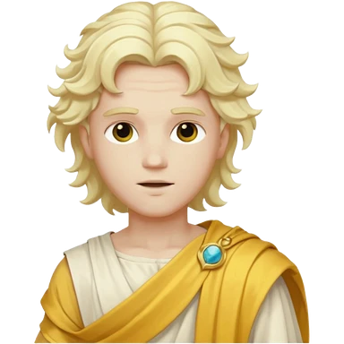 Apollo from Olympus Gods with long white blonde wavy hair, yellow toga emoji
