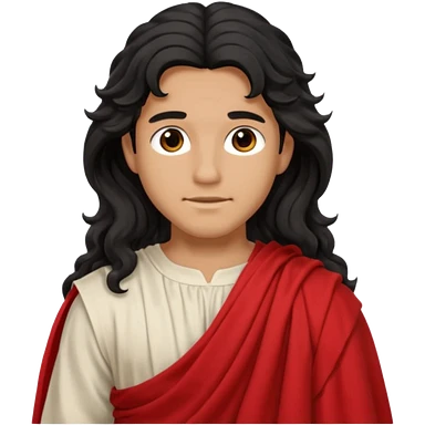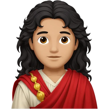 Adonis from Olympus Gods with long black wavy hair, red toga emoji