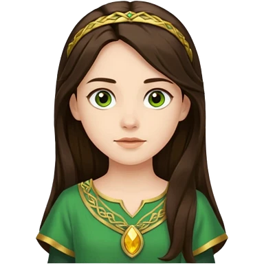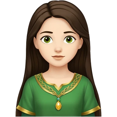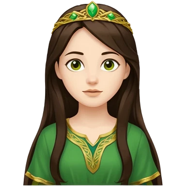 Juno from Olympus Gods with long dark brown hair, green tunic emoji
