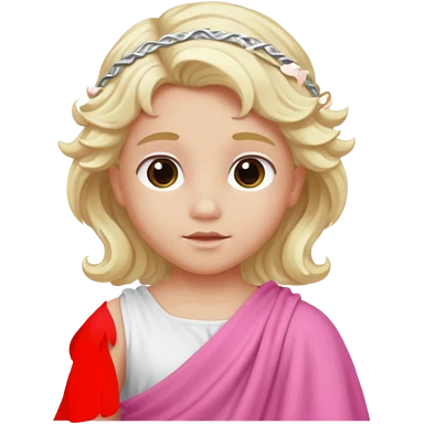 Cupid from Olympus Gods with long white blonde wavy hair, pink toga emoji