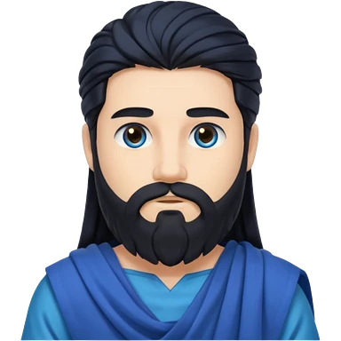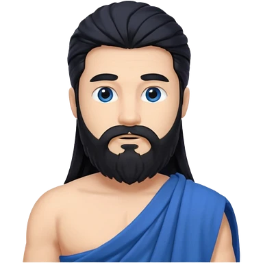 Neptune from Olympus Gods with long black hair and beard, blue toga emoji