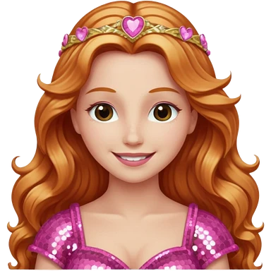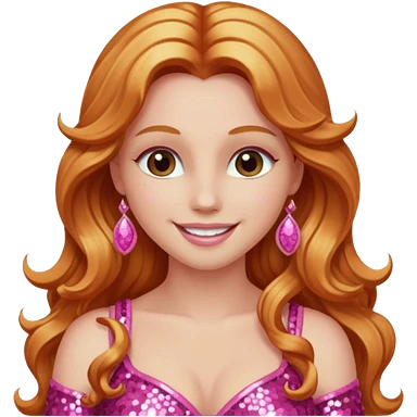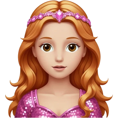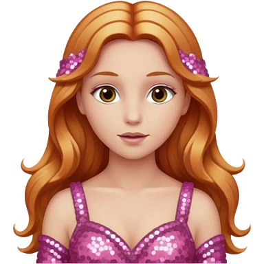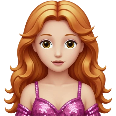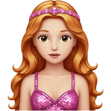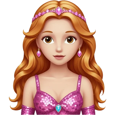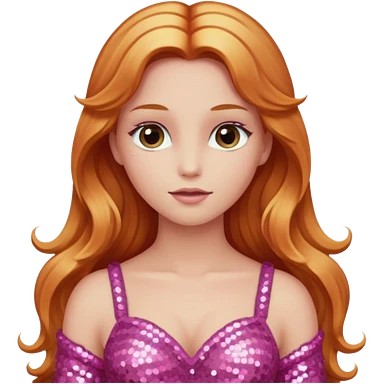 Venus, Goddess of Love from Gods and Goddesses with long ginger hair, pink sequin outfit emoji | AI Emoji Generator